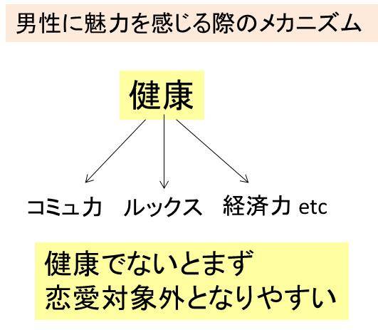 そして、健康でない男性はいくらイケメンであっても、コミュニケーションが上手であっても、「なんか魅力を感じない」と恋愛の対象外になる確率がかなり高くなるのです。