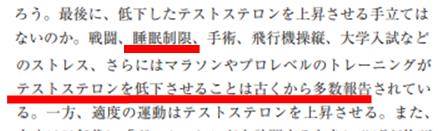 これは、きちんと睡眠がとれていないとテストステロンの分泌量が低下することが原因です。これは科学的に証明されている事実なのです。